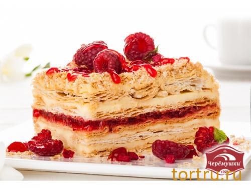 Начинка из свежих ягод малины в сочетании с тончайшими слоеными коржами и нежным заварным кремом.
