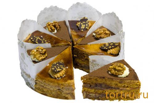 Грецкие орехи, крем с вареной сгущенкой, коржи с натуральным цветочным медом. Насладитесь богатым и насыщенным вкусом!