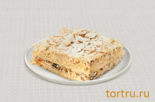 Коржи из слоенного теста, прослоенные кремом «Шантильи» ванильным с фруктово-орехово-медовым наполнителем.