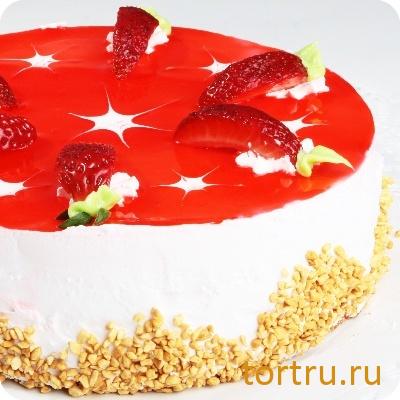 Состав: сливки растительные, начинка вкусовая клубничная, йогуртово-сливочный фонд, свежая клубника, сахар-песок, яйцо куриное, смесь для приготовления бисквита, мука пшеничная высшего сорта, гель, посыпка дутый рис, какао-порошок, ароматизатор идентичный натуральному, коньяк или вино десертное.