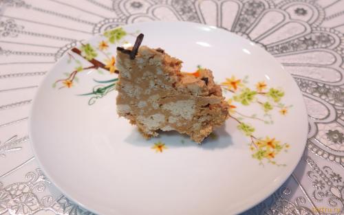 Состав: молоко сгущенное вареное, мука, маргарин, масло сливочное, сметана, сахар, шоколад, сорбиновая кислота (Е-200), сода, ванилин.