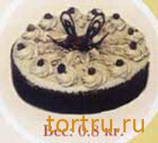 Слои бисквита с какао порошком пропитаны сиропом, соединены смесью крема сливочного и пралине (перетертые орехи с сахарной пудрой). Поверхность украшена рисунком из этого же крема и орехами.