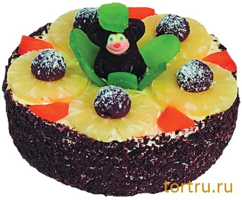 Сладкий вкус победы! Нежный бисквит прослоен банановым кремом и украшен шоколадной фигуркой, тропическими фруктами и цукатами. Сладкие лавры достанутся избранному!