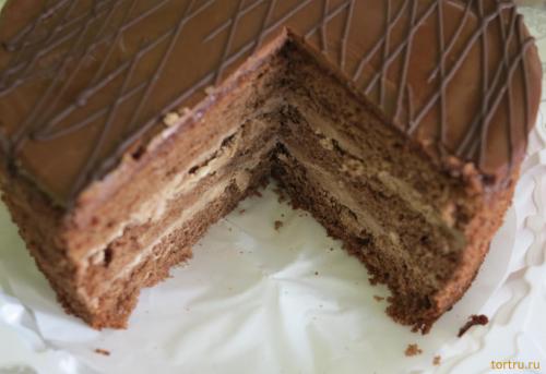 Торт очень сухой, пропитки вообще нет. Крем перемешан не полностью, то светлые куски, то темные - перемешать-то можно было более однородно. сверху тоже как-то небрежно линии нарисованы. Торт огорчил, больше такой покупать не захочется, уж очень сухой.