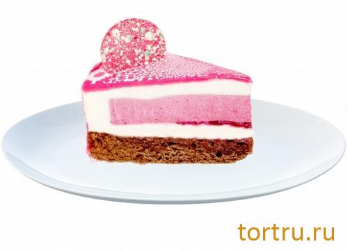 Шоколадный бисквит брауни, щедро пропитанный малиновым сиропом в изумительном сочетании с шоколадным и малиновым муссами.