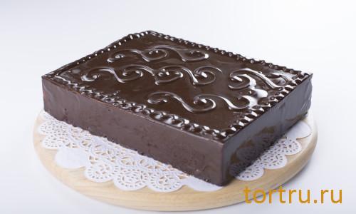 Торт изготовлен по классическому рецепту. В основе сдобное тесто в сочетании с ванильным кремом суфле. Поверхность торта покрыта шоколадной глазурью.