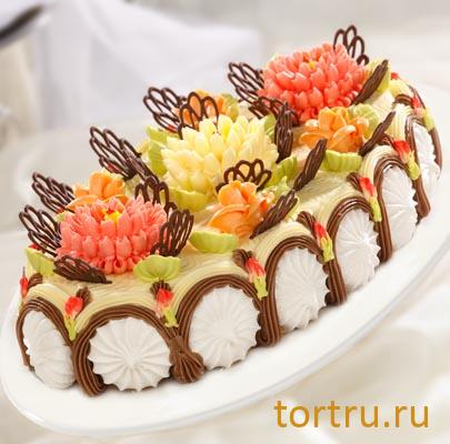 Бисквитные коржи пропитаны сиропом с добавлением вина и коньяка, прослоены сливочным кремом с джемом или вареньем. Торт украшен сливочным и шоколадным кремом.