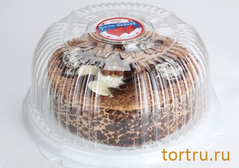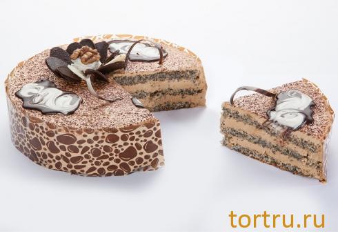 Нежный маковый бисквит, воздушный крем с вареной сгущенкой и грецким орехом.