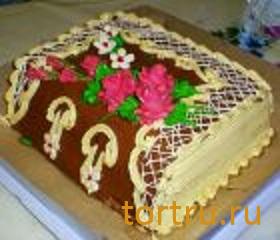 Три слоя бисквитного полуфабриката пропитаны сиропом и соединены смесью крема сливочного с джемом или вареньем и орехами. Поверхность покрыта сливочным шоколадным кремом, украшена сливочным кремом и сахарной мастикой. Боковая поверхность отделана сливочным кремом.