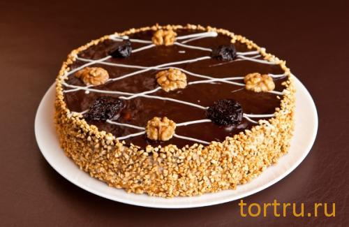 Песочные коржи, сметанный крем, чернослив, грецкий орех.