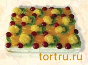 Состав: п/ф бисквитный, сироп, желе, фрукты, крем "Сметанно-шоколадный", крем "Апельсиновый"