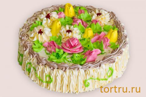 Классический рецепт. Основа - белый бисквит, пропитанный коньячным сиропом, в сочетании со сливочным кремом. Отделан шоколадом.