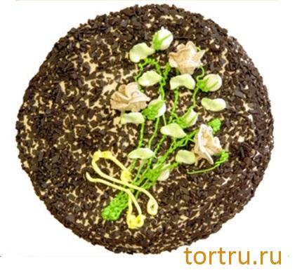 Медовый бисквит, пропитанный сиропом, прослоен взбитыми слив-ками с добавлением вареного сгущенного молока и грецкого ореха. Покрыт шоко-ладной глазурью "Карибэ". Оформлен цветами из взбитых сливок. Серия домашних тортов.