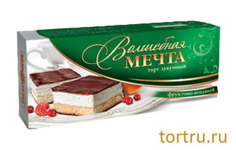 Лукум - это взбитая масса яичных белков с добавлением ванилина. Лукумный торт состоит из тонкой прослойки песочного теста и слоя воздушного суфле, политого густым слоем натурального шоколада. Торт "Фруктовая фантазия" отличает прослойка из ароматного лимонного повидла. Кладется в пластиковый поддон и упаковывается в пленке в картонную коробку.