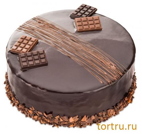 Ванильный и шоколадный бисквит пропитан ванильным сиропом, прослоен кремом на основе йогурта со злаками. Торт украшен шоколадным декором.