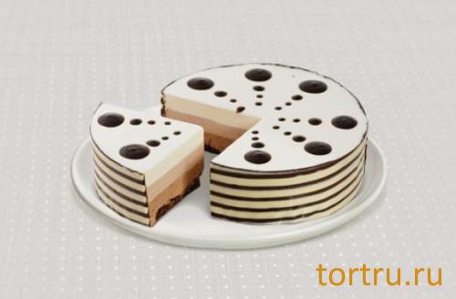 Шоколадный бисквит с тремя видами шоколадно-сырного суфле на основе творожного сыра и бельгийского шоколада.