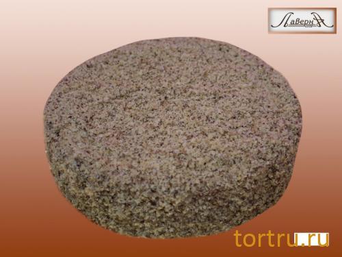 Шоколадный бисквит. Крем: масляно-шоколадный. Посыпан грецким орехом