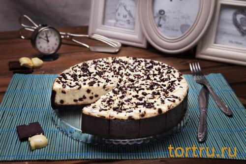 Очередная удачная вариация на тему классического ванильного чизкейка. Благородный дуэт воздушной творожно-сливоч-ной начинки с каплями итальянского шоколада никого не оставит равнодушным.